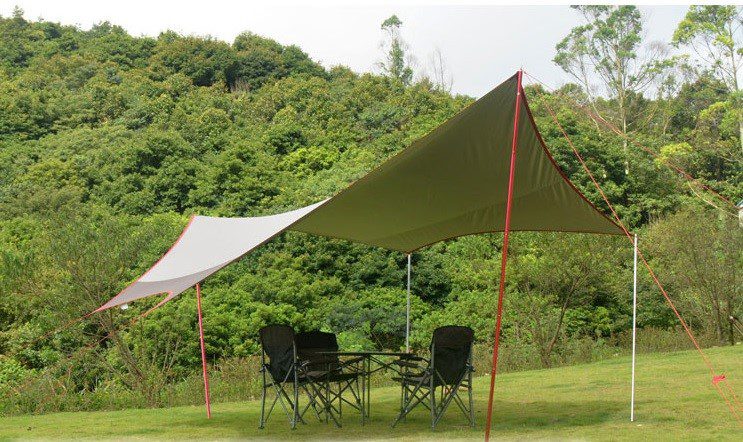 เต็นท์เดินป่า โดยทั่วไปถูกออกแบบมาให้พกพาได้ง่ายอยู่แล้ว การใช้เต็นท์สนามขนาดใหญ่ที่ไว้สำหรับกิจกรรมกลางแจ้งจึงควรที่จะอยู่ในที่ที่เหมาะสม แต่ด้วยคุณสมบัติของเต็นท์กลางแจ้งประเภทนี้คือ มันสามารถป้องกันแดดได้เป็นอย่างดี และยังบรรจุคนได้เป็นจำนวนมาก การถ่ายเทอากาศก็ทำได้เป็นอย่างดี หรือนกรณีที่มีฝนก็ยังมีอุปกรณ์เสิรมที่เป็นผ้าพลาสติกปิดคลุมลงมาเพื่อบังฝนได้เช่นกัน แต่เรื่องความแข็งแรงนั้นมักไม่ทนต่อลมสักเท่าไหร่